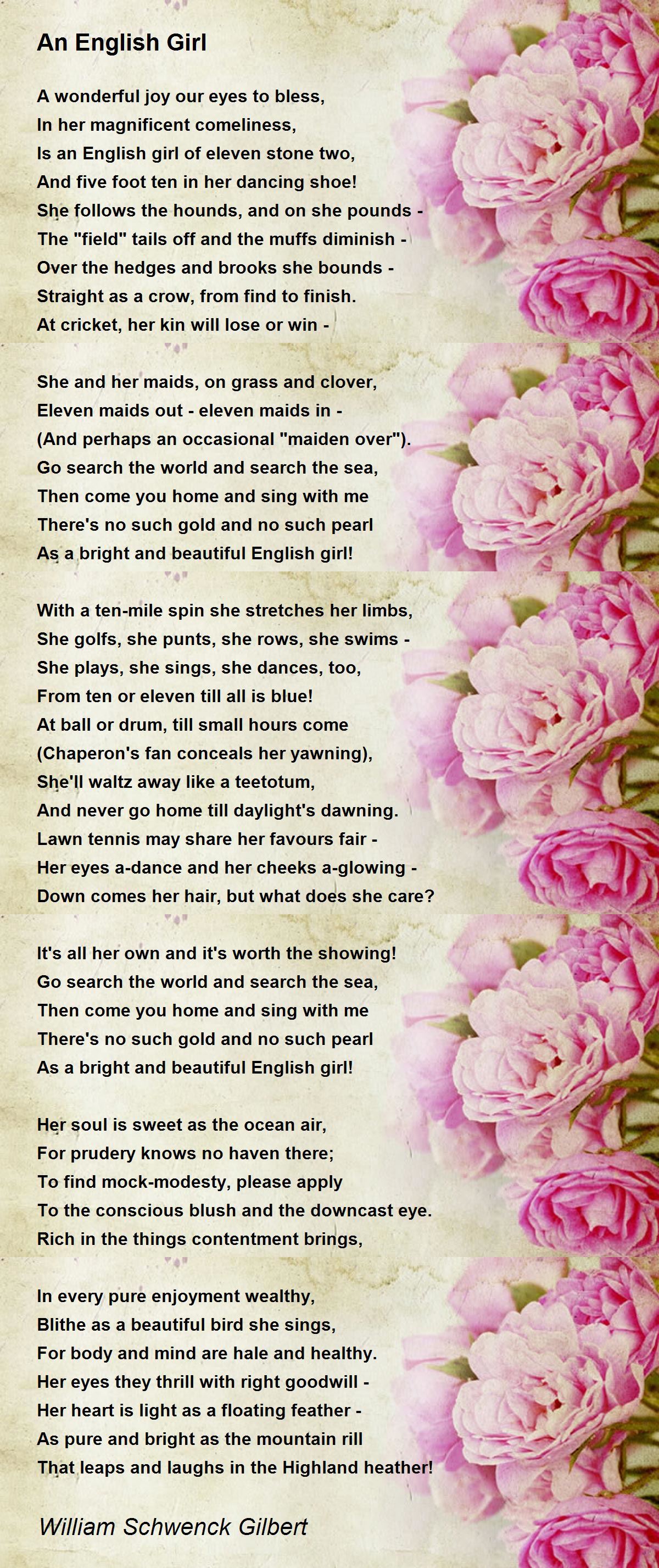 English Poem For Girls / 32 Poems about Life as a Teen - Here is a collection of some great and unique short love an indian love poem for a girl.. Can you find out the name of poem if you only know a few the answer to both questions is: Sometimes you need a little inspiration to. Poems about inspiration and hope. There are several english poems for kids, written to capture the imagination of young minds. Modern english rhyming poem | a mothers love.
